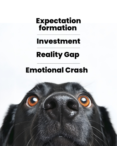 A graphic shows expectation formation, investment, reality gap, emotional crash